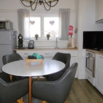 Die luxuriöse Küche ist ein Paradies für ein Ferienhaus dieser Größe. Alle Einbaugeräte sind vorhanden, dazu eine großzügige Arbeitsfläche, um köstliche Mahlzeiten oder Getränke für Sie und Ihre Gäste zuzubereiten. Ein 4-Flammen-Gasherd mit Dunstabzugshaube, eine Spülmaschine, ein großer Kühlschrank mit separatem Gefrierschrank, ein Backofen, eine Mikrowelle sowie diverses Kleininventar.