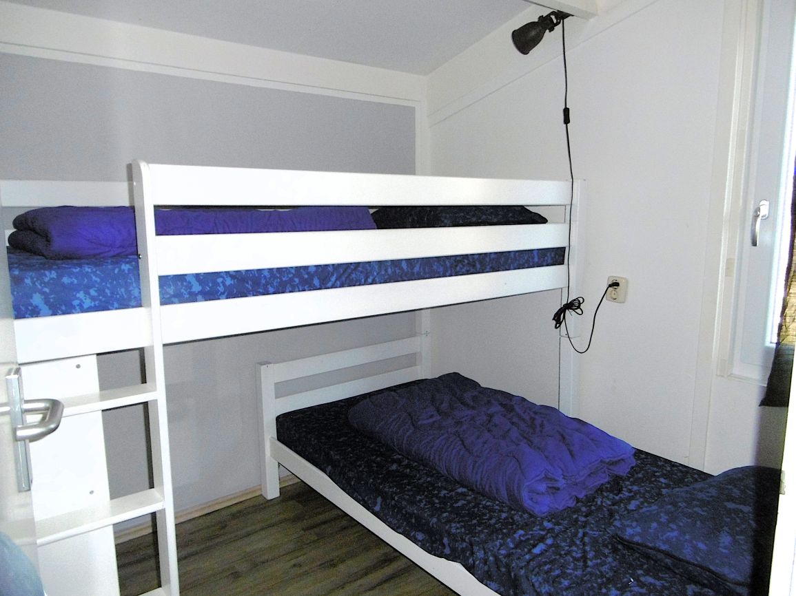 Es gibt 2 Schlafzimmer: ein Elternschlafzimmer mit 2 Boxspringbetten (80 x 200) und einer Kommode für Ihre Kleidung. Das Kinderzimmer verfügt über ein halbhohes Bett und ein Boxspringbett sowie Stauraum für Kleidung und andere Dinge.