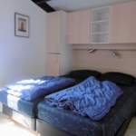 - Das Hauptschlafzimmer ist mit zwei komfortablen Boxspringbetten (80 × 200 cm) sowie einem geräumigen Kleiderschrank für Kleidung und persönliche Gegenstände ausgestattet.