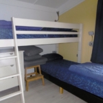 - Das zweite Schlafzimmer verfügt über ein halbhohes Massivholzbett mit einem Einzel-Boxspringbett darunter. Unter dem Bett befindet sich zusätzlicher Stauraum, zum Beispiel für Kleidung oder Spielzeug.